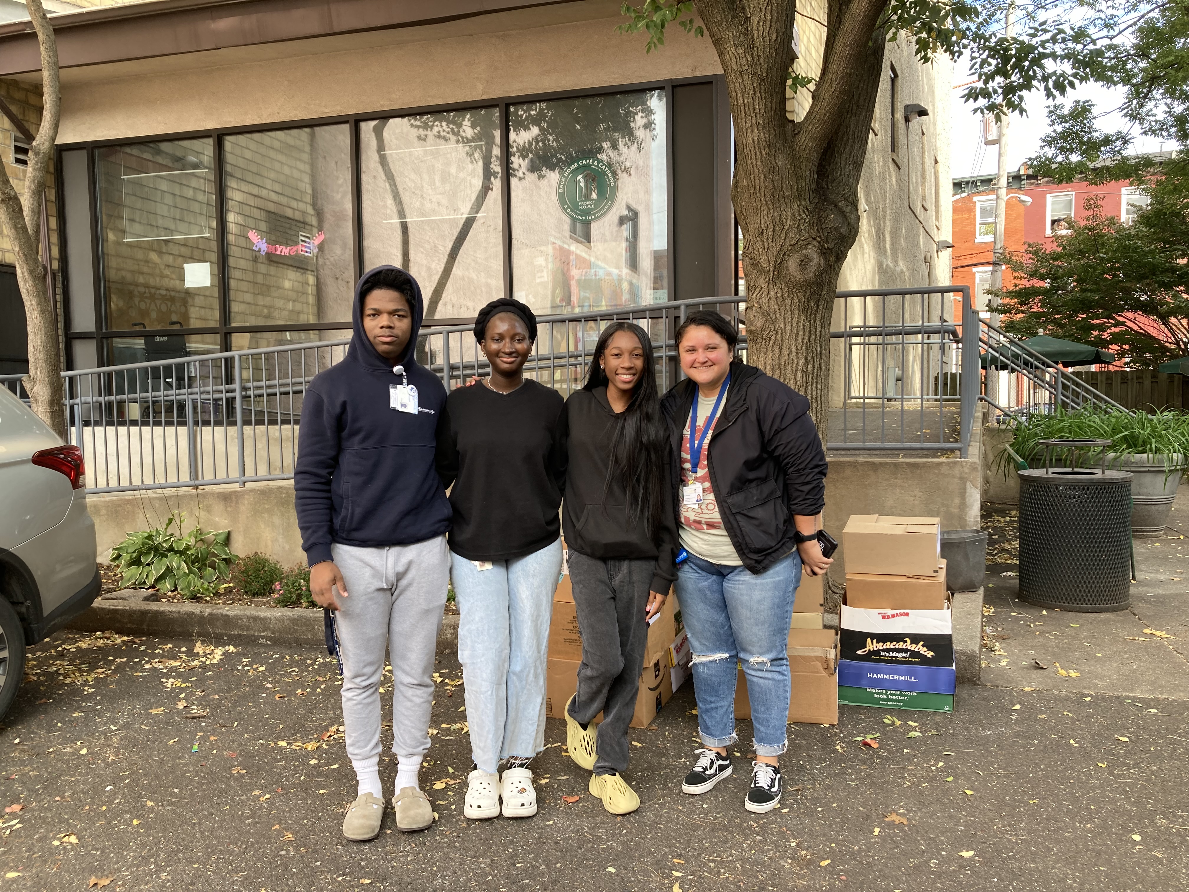 买球app representatives, under the direction of Vice President for Mission Integration Sister Rita Fanning, CSFN, stopped by Philadelphia’s Project HOME on October 25 with a donation of 74 boxes of books to support Project HOME. The gently used books, which were collected across campus for several months, will be used to help grow Project HOME’s online book business HOMEbooks. The social enterprise business initiative, under the coordination of Ra Mendoza, allows for the employment of people who are recovering from homelessness by offering their residents employment opportunities through the sorting and mailing of donated books to customers all over the world.